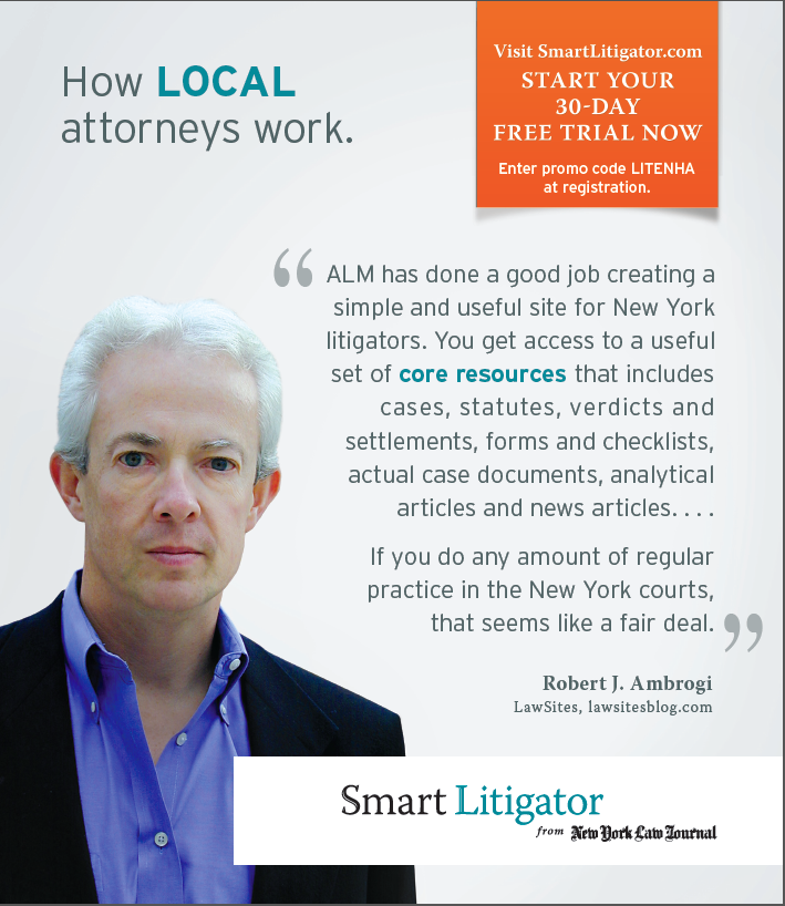 Thanks to a reader comment posted to this blog, I became aware of an advertisement for Smart Litigator running this week in the print edition of the New York Law Journal that features a quote from my review of the product and a picture of me that looks big enough for a Times Square billboard.