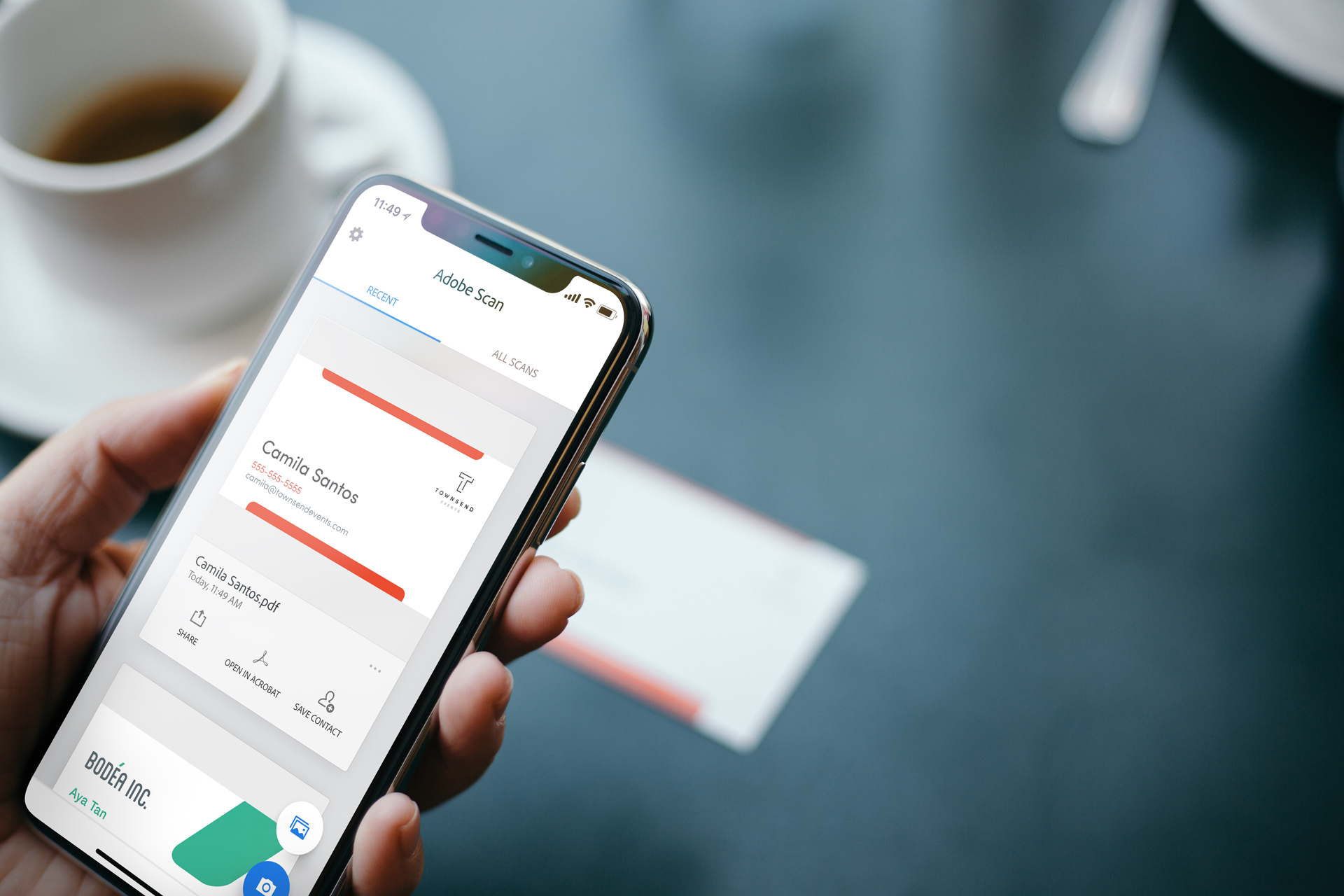 Adobe also announced enhancements to its free Adobe Scan app for iOS and Android devices so that the app not only scans images of business cards, but also turns them into shareable digital contacts.