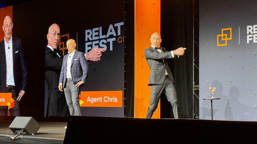 Building on a comedy bit they introduced at least year’s Fest, CTO Chris Brown’s twin brother Eric Brown played AI agent Chris.