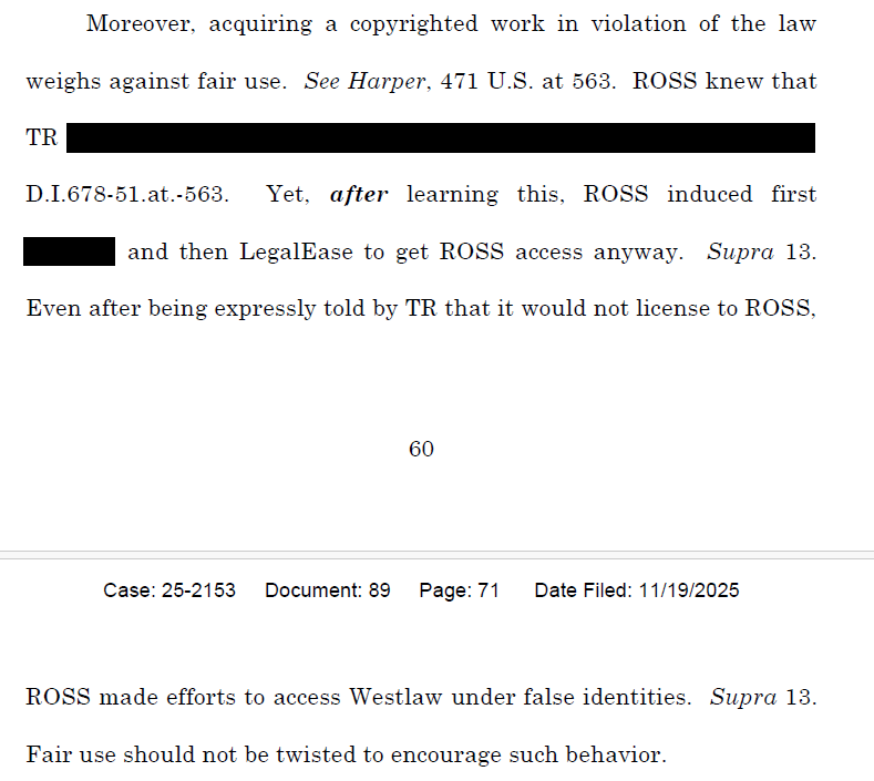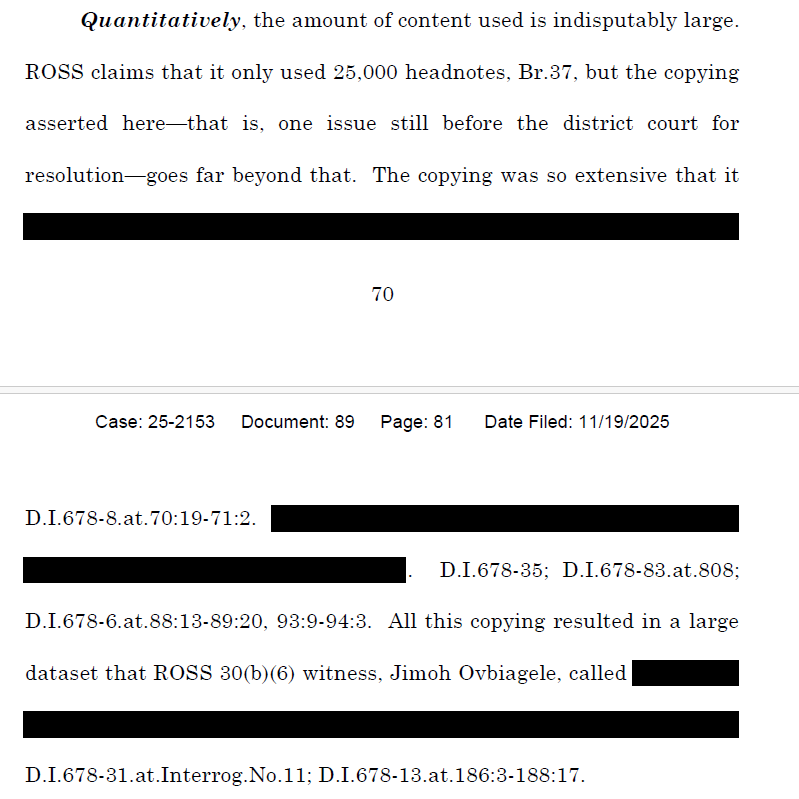 Earlier today, I wrote about the brief filed by Thomson Reuters in its ongoing copyright litigation against the now-closed legal research startup ROSS Intelligence, which is now on an interlocutory appeal to the 3rd U.S. Circuit Court of Appeals.