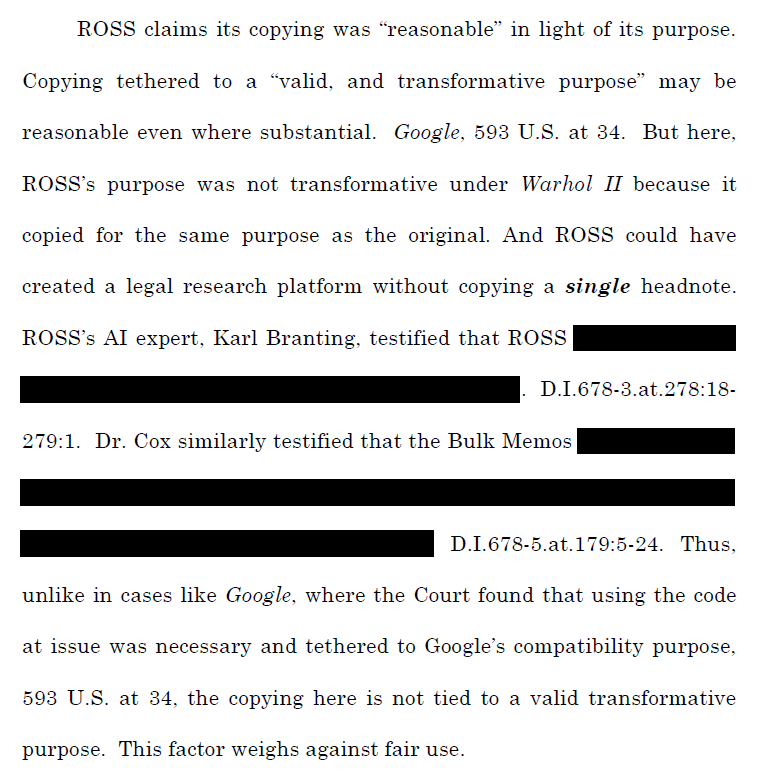 Should we read this to suggest ROSS was trying to block its other competitors from getting access to the materials it had LegalEase develop? i suppose there is some irony in that.